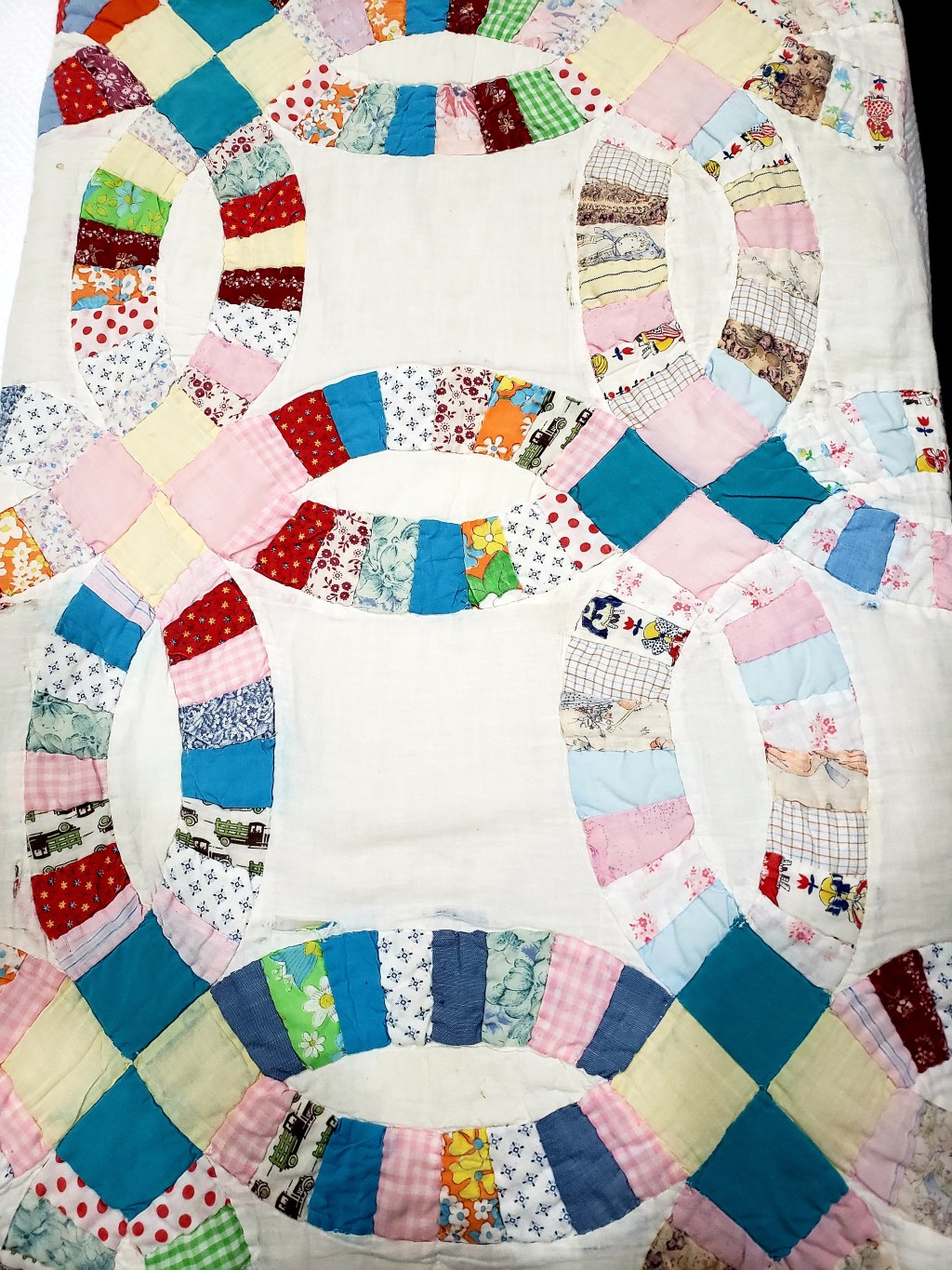 I remember standing in my grandma’s kitchen, watching wrinkles disappear from the scraps of fabric as I passed the hot iron over each piece. The smell of that steam must have found its way to my brain and created some really deep grooves.