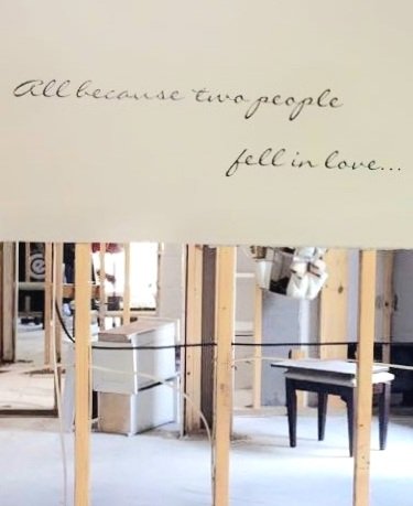 Photos had previously hung just below that vinyl phrase. The story of us.