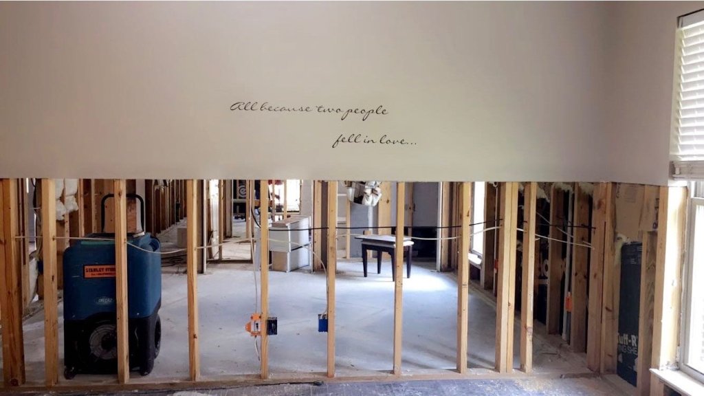 A few days later, we were alone at the house. You could see straight through. From the primary bath to the front yard, nothing obstructed the view but a few studs.
